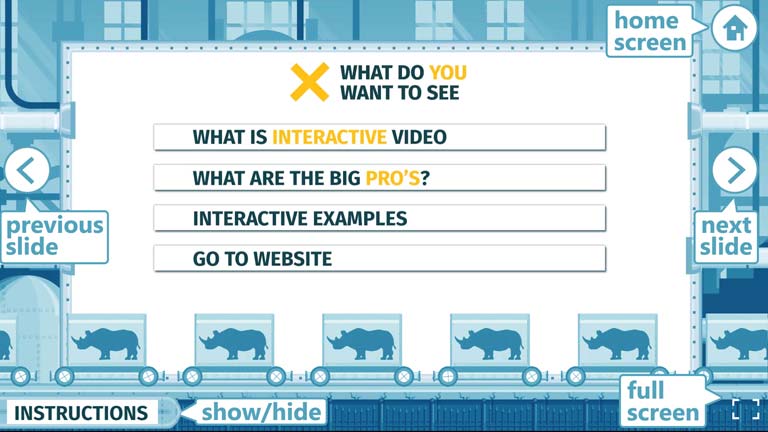 Wij zetten de presentatie die je hebt gegeven om in een interactieve tool. Zo kunnen mensen die niet bij de fysieke presentatie waren, de hele presentatie zien inclusief video content en functionalisteit ZONDER extra software of apps nodig te hebben.